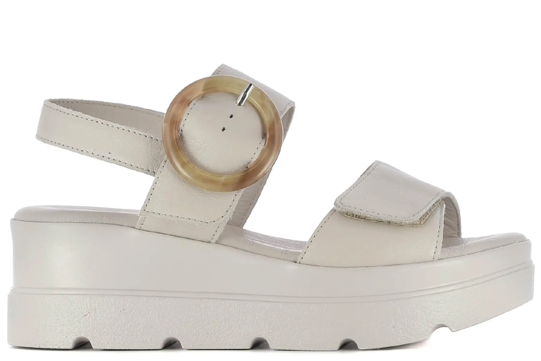 Altura plataforma (cm): 6.0Color: Beige Material Exterior: Piel Plantilla: Piel Forro: Microfibra Cierre: Tiras Ajustab…